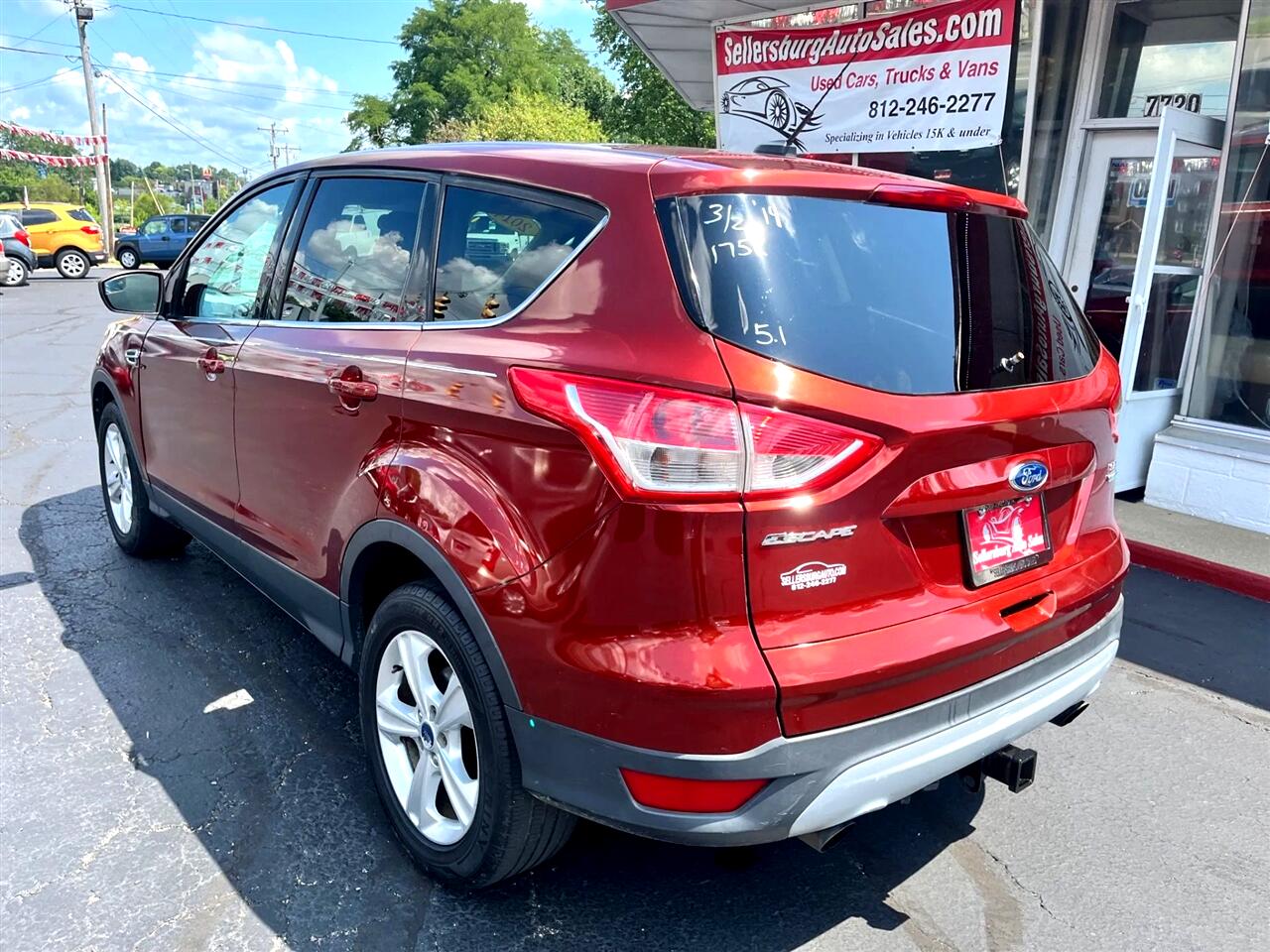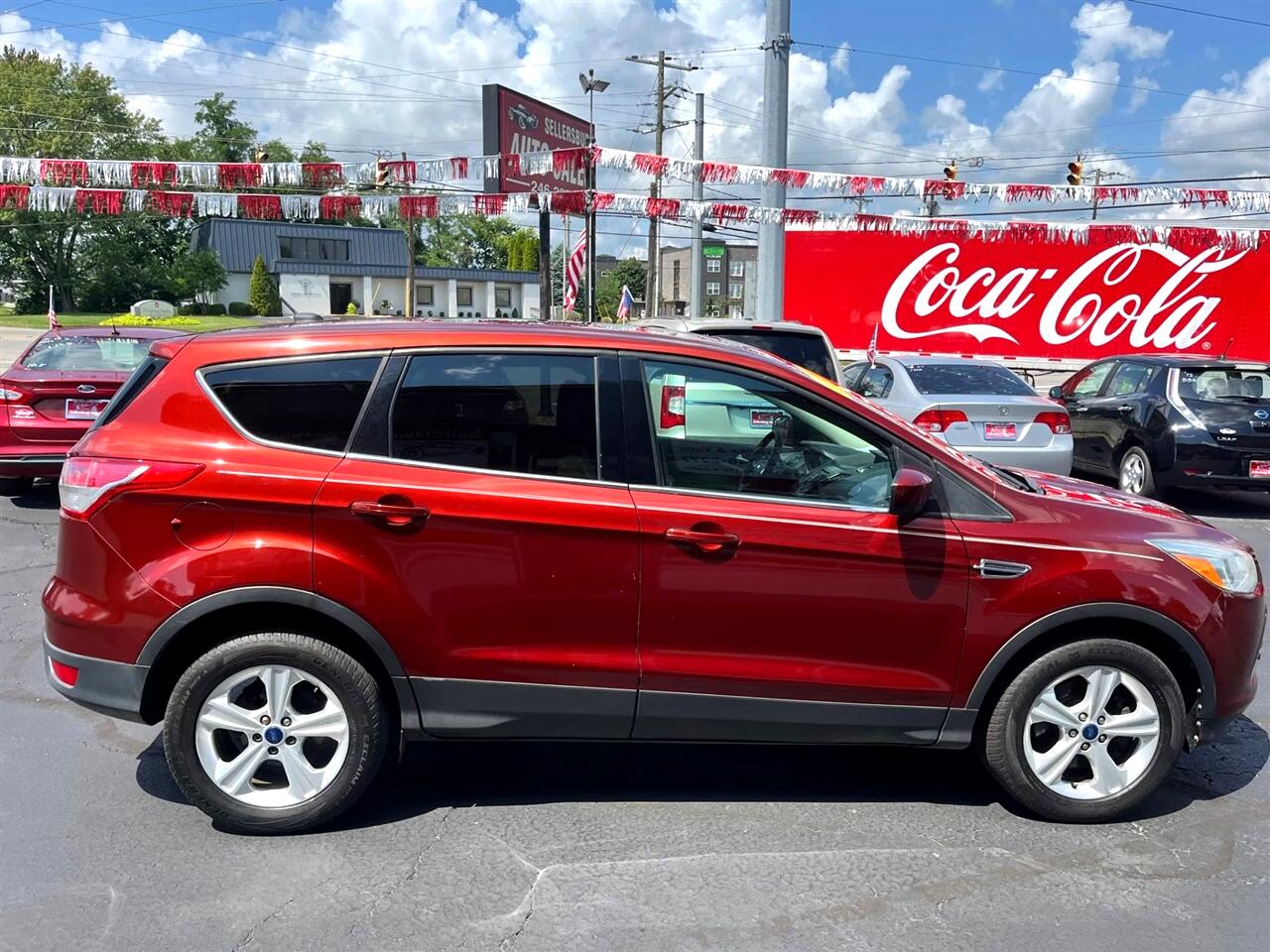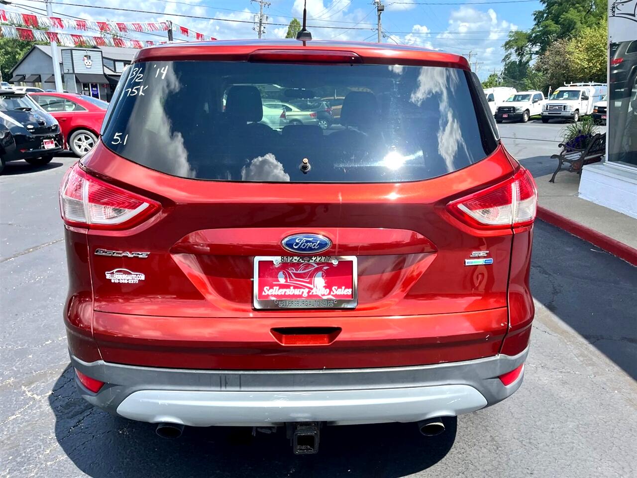 Get ready to escape the ordinary with this fiery 2014 Red Ford Escape! Equipped with a turbocharged 4-Cyl EcoBoost 2.0L engine, this compact SUV packs a punch while still maintaining excellent fuel efficiency. Slide into the power driver's seat and adjust it just the way you like with the Tilt & Telescoping Wheel. Blast your favorite tunes through the SiriusXM Satellite radio as you cruise around town with the AM/FM Stereo playing through the premium sound system. The sleek Rear Spoiler adds a touch of sportiness, while the Alloy Wheels give this Escape a stylish edge. Drive confidently knowing the AdvanceTrac and Traction Control systems are keeping you safe on every turn. Need to parallel park? No problem - just glance at the helpful Backup Camera. And don't worry about the vehicle's history - a Carfax report is available for your peace of mind. So grab the keys with the Keyless Entry system and hit the road in style and comfort with this fully-loaded 2014 Ford Escape!